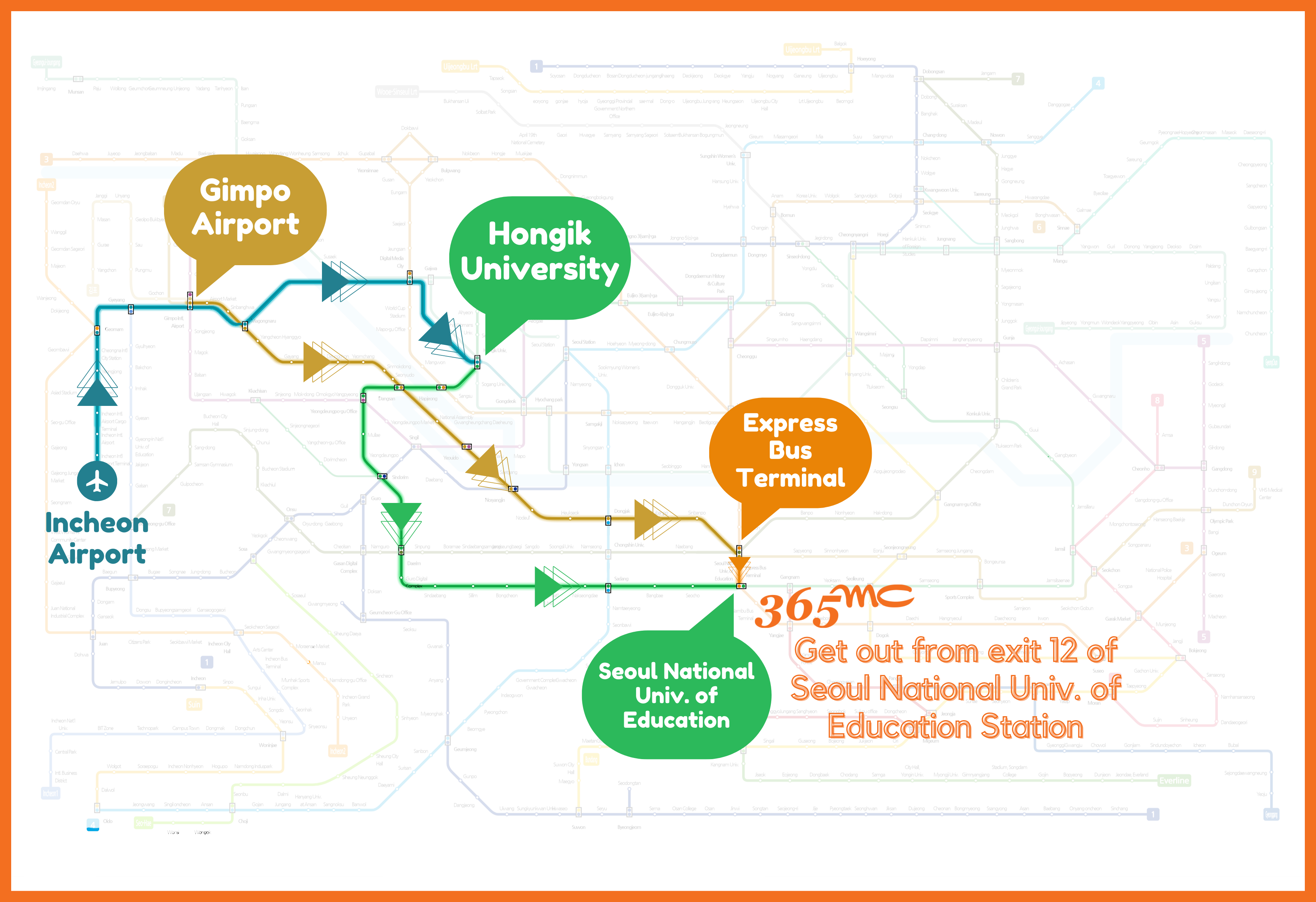 Take a subway at Incheon Airport/Gimpo Airport to Seoul National
